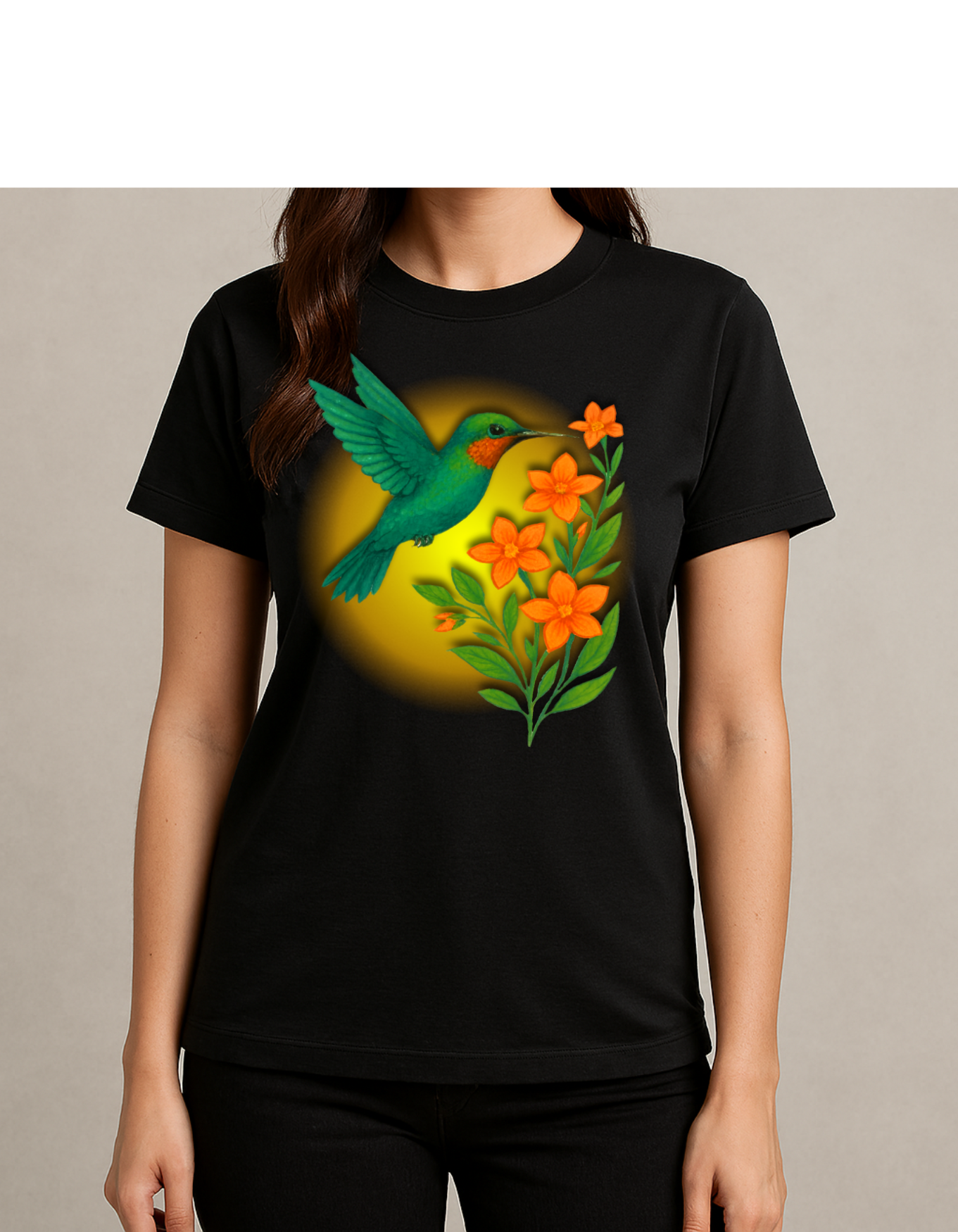 Vestir ou carregar o colibri em uma estampa é vestir essa frequência.